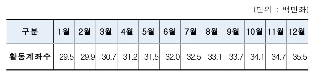 아울러, 연도 주식거래 활동계좌가 연초 2,936만개 대비 612만개가 증가하여, 12월말 기준으로 3,548만 개를 기록했습니다.