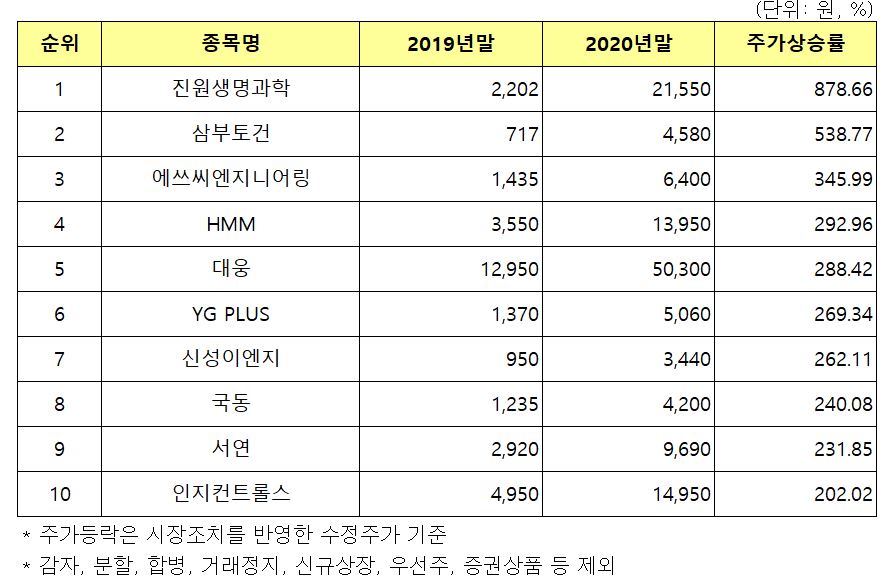 6. 올해 주가상승률 1위는 진원생명과학 878.66%