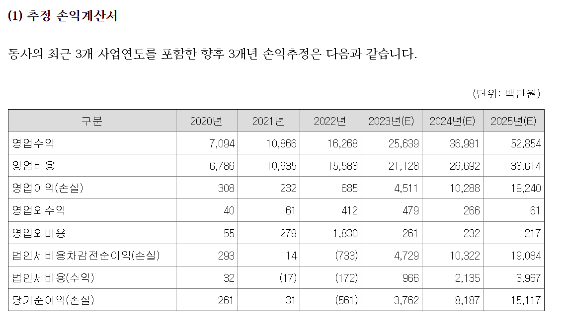 24. 회사에서 제시한 23년 예상 매출액 250억, 예상 영업이익 45억을 달성하는지 확인하고 투자해도 된다.